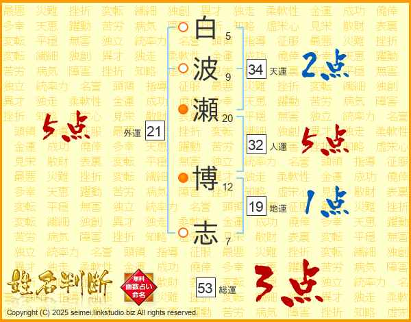 白波瀬博志さんの総運は53画の3点!