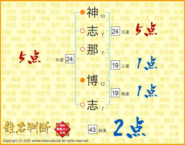 神志那博志さんの総運は43画の2点!