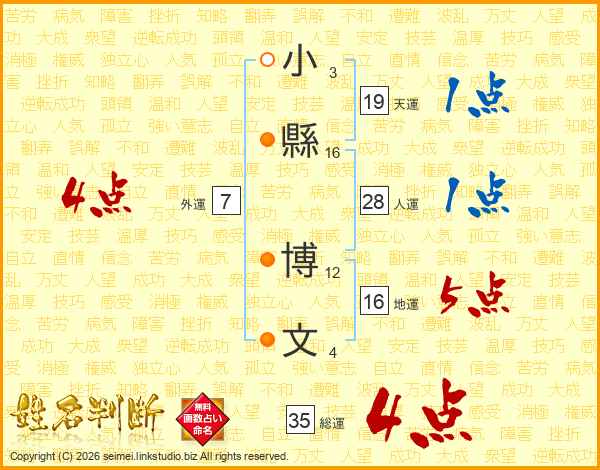 小縣博文さんの総運は35画の4点!