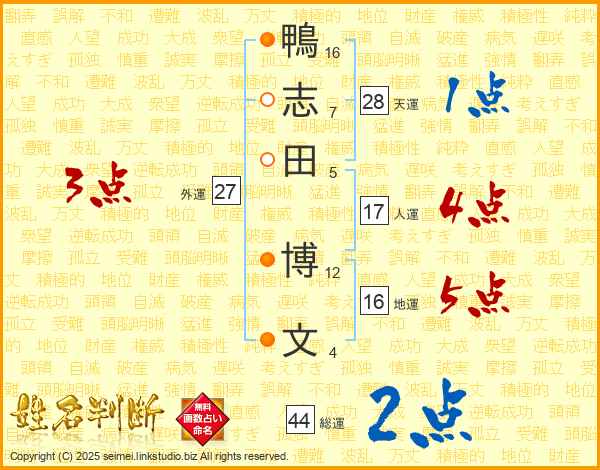 鴨志田博文さんの総運は44画の2点!