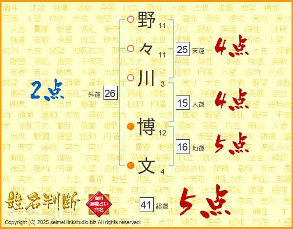 野(11画)々(11画)川(3画)  博(12画)文(4画)
