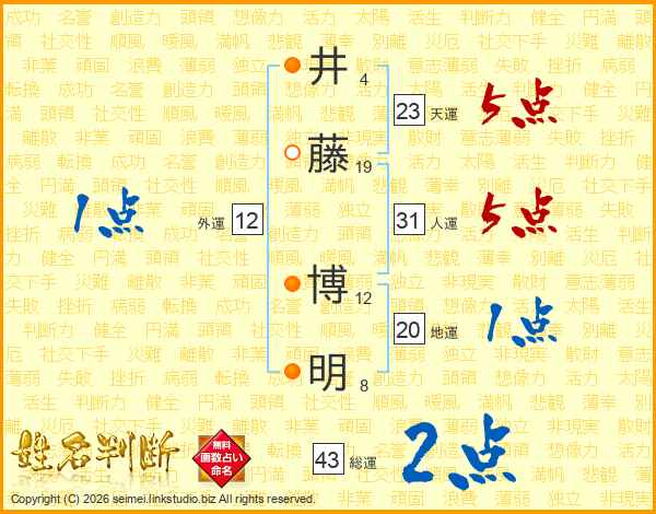 井(4画)藤(19画) 博(12画)明(8画)