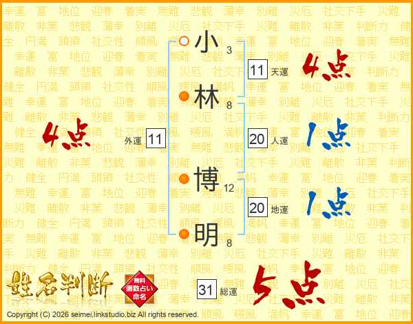 小林博明さんの総運は31画の5点!
