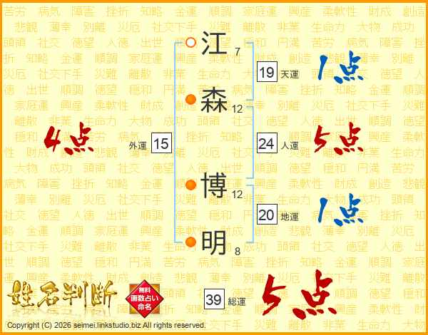 江森博明さんの総運は39画の5点!