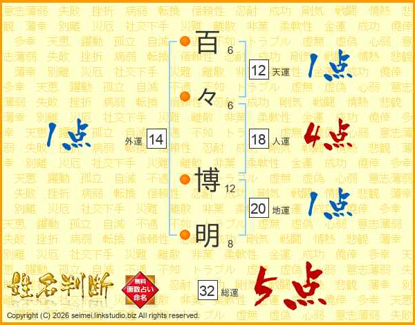百々博明さんの総運は32画の5点!