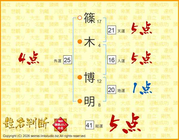 篠木博明さんの総運は41画の5点!