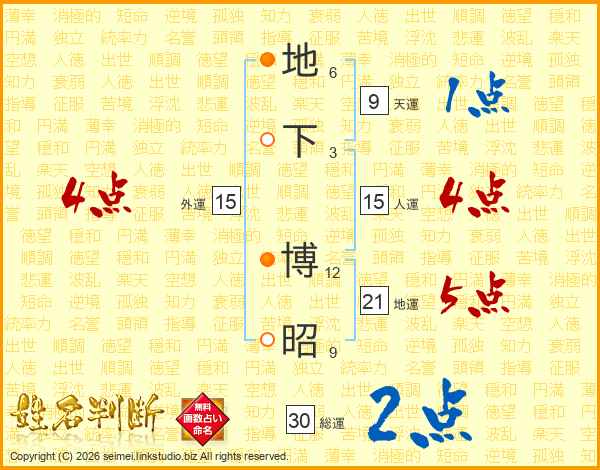 地下博昭さんの総運は30画の2点!