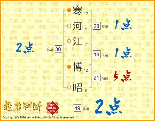 寒(12画)河(9画)江(7画) 博(12画)昭(9画)