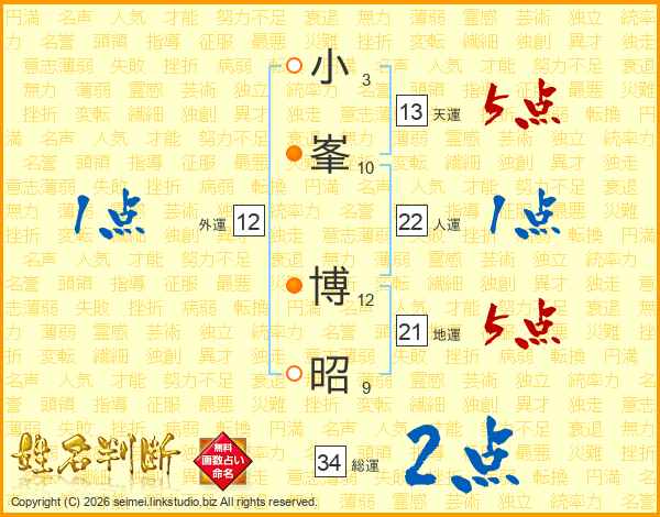 小(3画)峯(10画) 博(12画)昭(9画)
