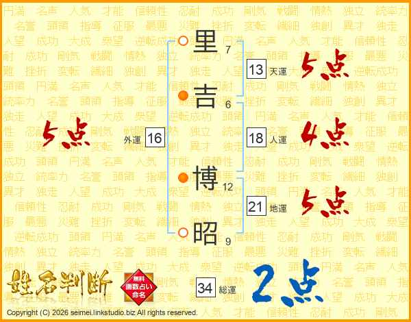 里吉博昭さんの総運は34画の2点!