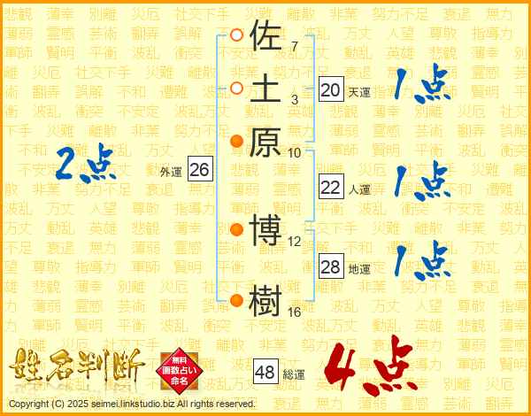 佐(7画)土(3画)原(10画) 博(12画)樹(16画)