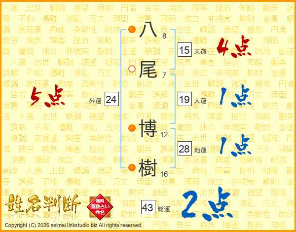 八尾博樹さんの総運は43画の2点!