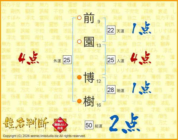 前園博樹さんの人運は25画の4点!