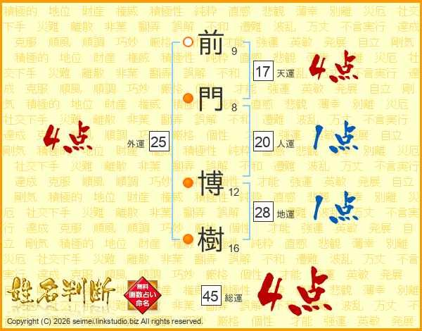 前門博樹さんの天運は17画の4点!