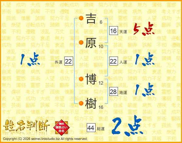吉原博樹さんの総運は44画の2点!