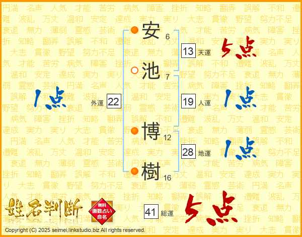 安池博樹さんの人運は19画の1点!