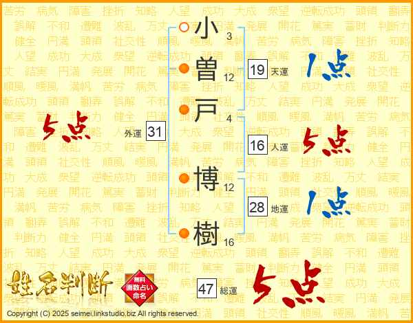 小(3画)曽(12画)戸(4画) 博(12画)樹(16画)