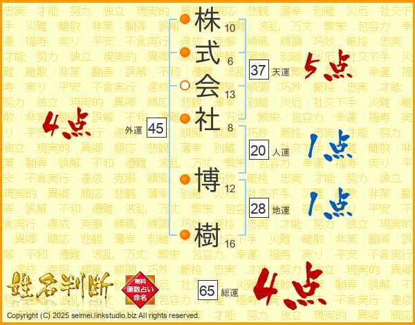 株(10画)式(6画)会(13画)社(8画) 博(12画)樹(16画)