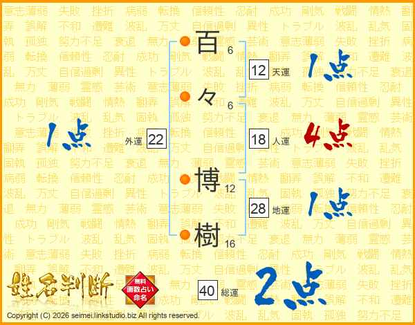 百々博樹さんの総運は40画の2点!