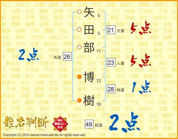 矢(5画)田(5画)部(11画) 博(12画)樹(16画)