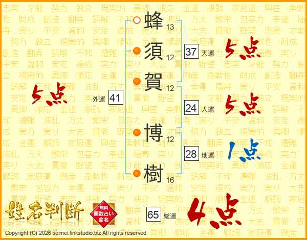 蜂須賀博樹さんの天運は37画の5点!