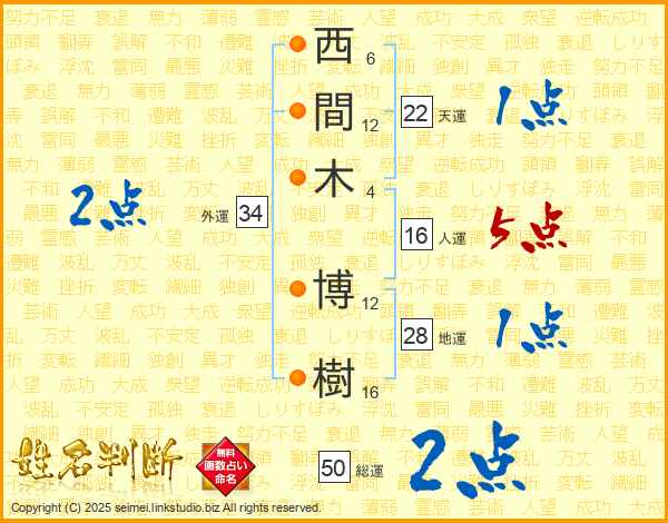 西(6画)間(12画)木(4画) 博(12画)樹(16画)