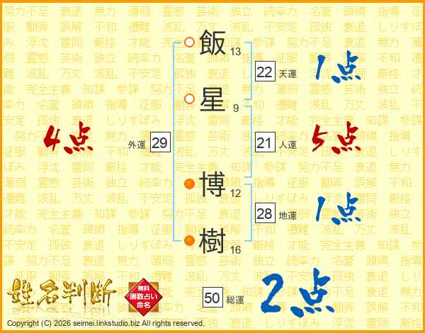 飯(13画)星(9画) 博(12画)樹(16画)