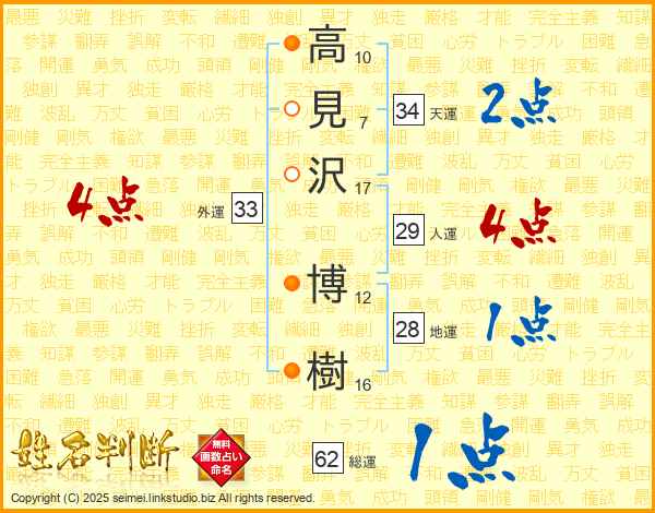 高(10画)見(7画)沢(17画) 博(12画)樹(16画)