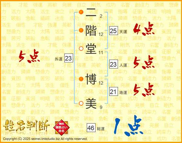 二(2画)階(12画)堂(11画) 博(12画)美(9画)