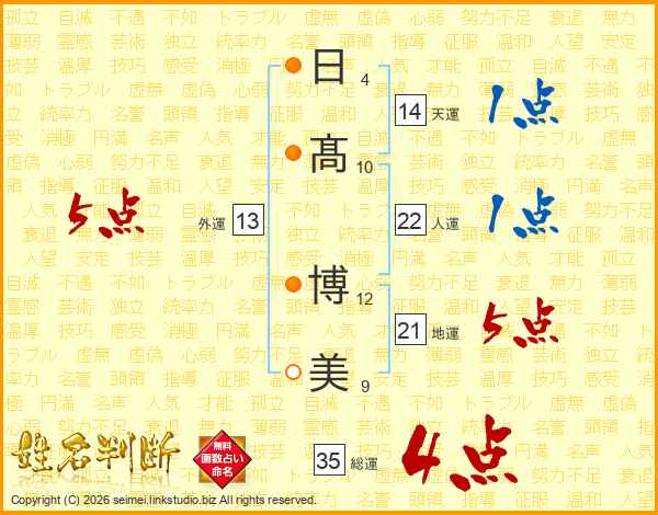 日(4画)髙(10画) 博(12画)美(9画)