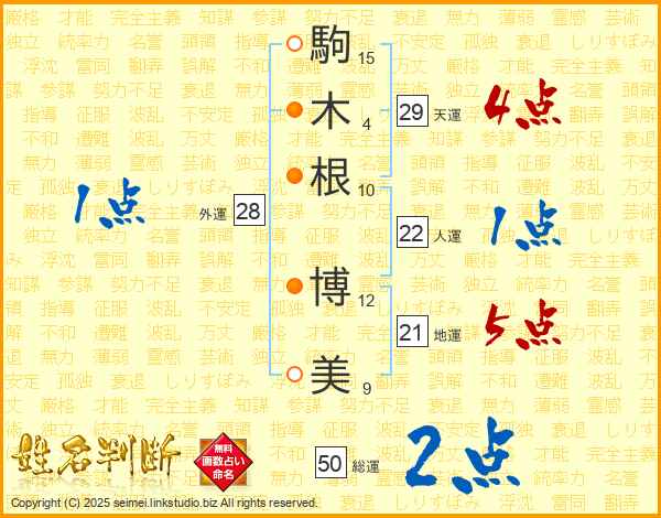 駒木根博美さんの天運は29画の4点!
