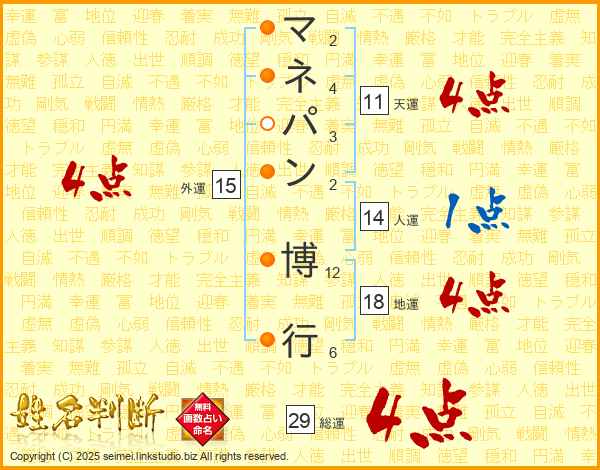 マ(2画)ネ(4画)パ(3画)ン(2画) 博(12画)行(6画)