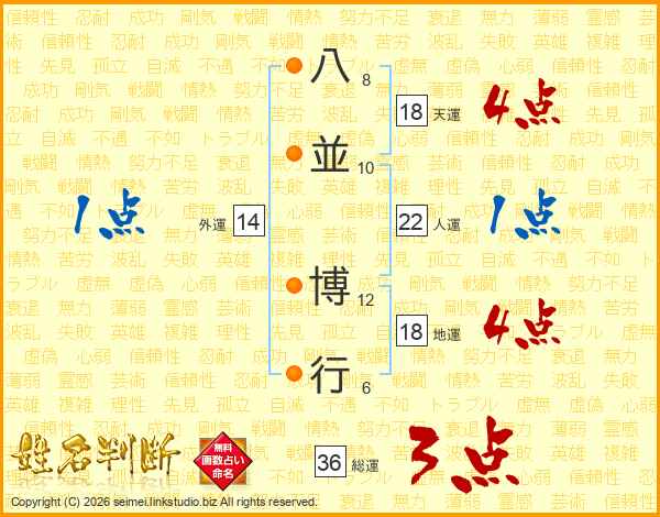八並博行さんの総運は36画の3点!