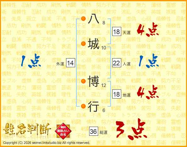 八城博行さんの総運は36画の3点!