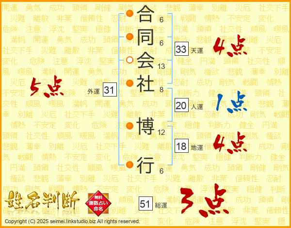 合同会社博行さんの総運は51画の3点!