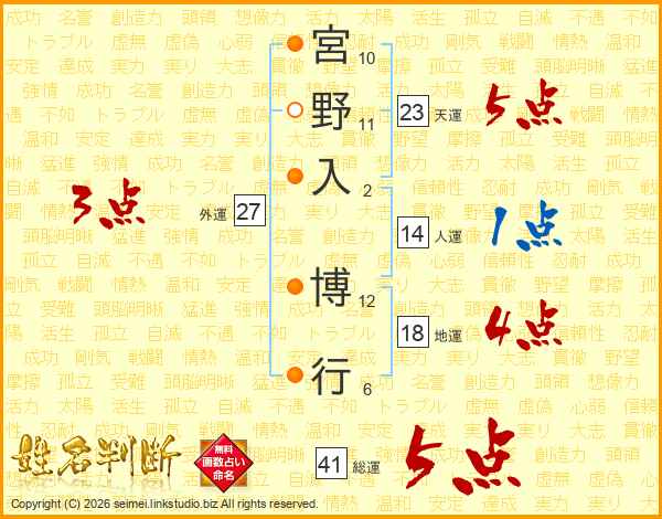 宮野入博行さんの総運は41画の5点!
