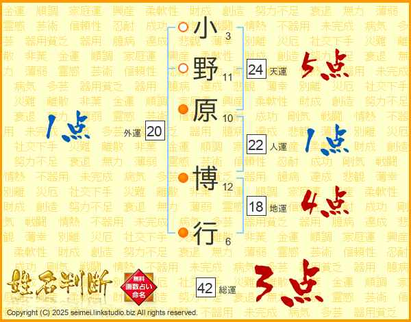 小(3画)野(11画)原(10画) 博(12画)行(6画)