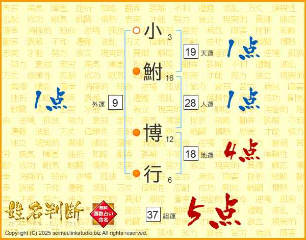小鮒博行さんの総運は37画の5点!