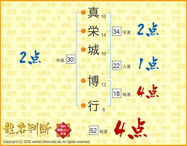 真(10画)栄(14画)城(10画) 博(12画)行(6画)