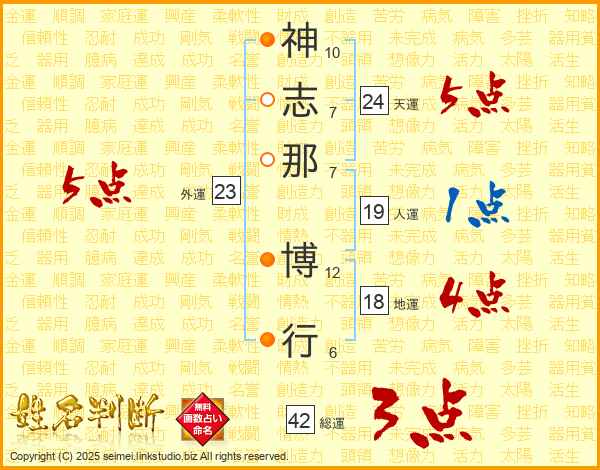 神(10画)志(7画)那(7画) 博(12画)行(6画)