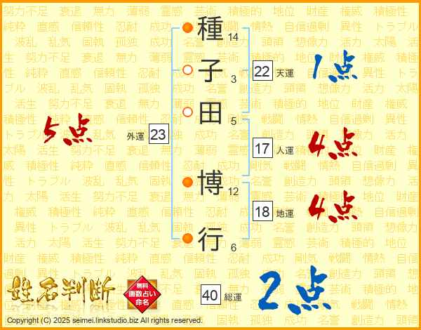 種(14画)子(3画)田(5画) 博(12画)行(6画)