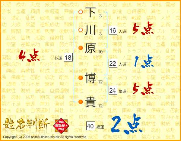 下川原博貴さんの地運は24画の5点!