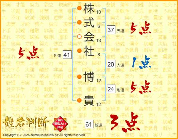 株式会社博貴さんの総運は61画の3点!