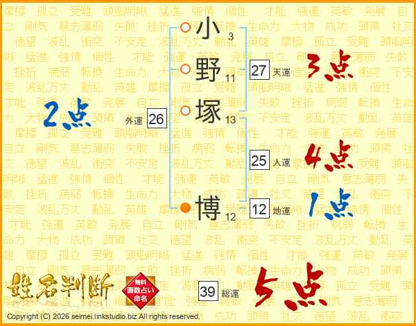 小野塚博さんの総運は39画の5点!