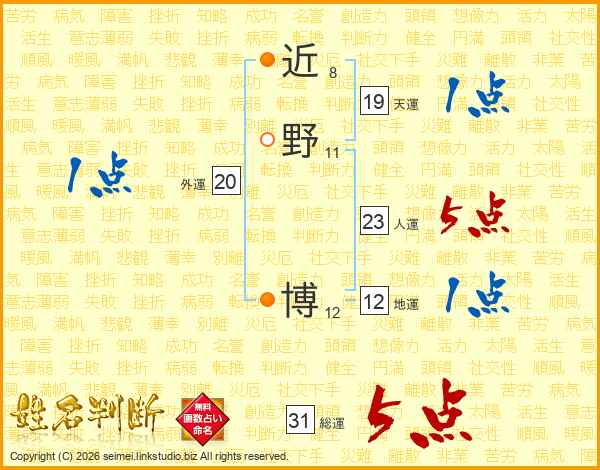 近野博さんの総運は31画の5点!