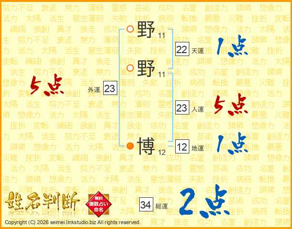 野野博さんの人運は23画の5点!