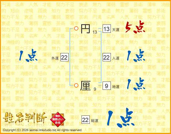 円厘さんの総運は22画の1点!