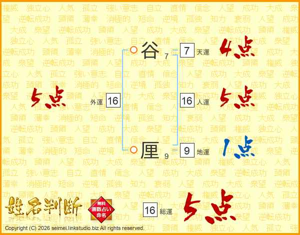 谷厘さんの総運は16画の5点!