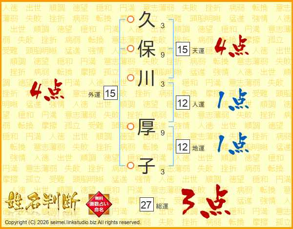 久保川厚子さんの総運は27画の3点!