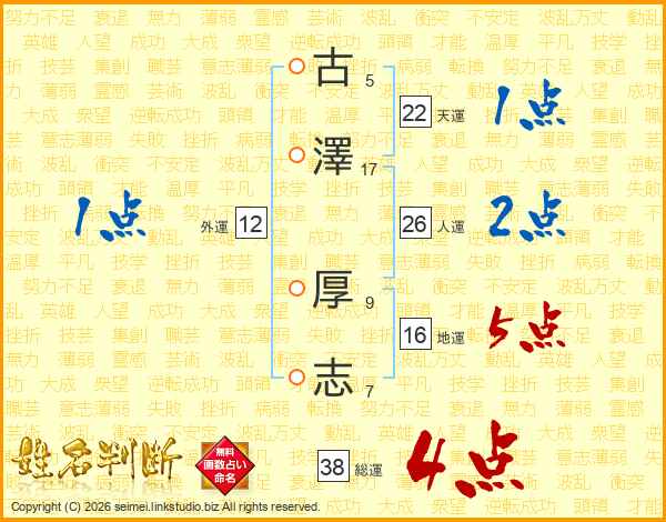古澤厚志さんの総運は38画の4点!
